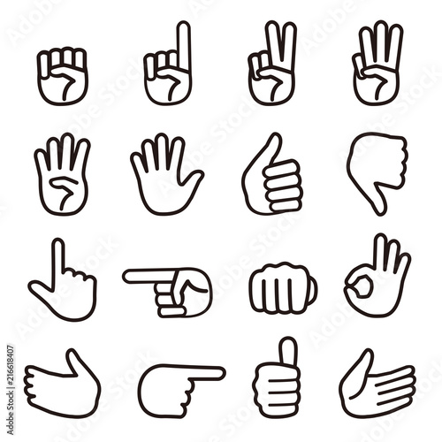 ハンドサイン 白黒 線画 アイコン / vector eps10
