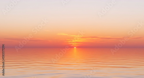 穏やか夕日 海面輝くオレンジ色 静かな水面に映る夕焼け. AI Generated