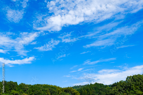 【写真素材】 青空 空 雲 秋の空 背景 背景素材 9月 コピースペース