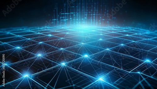 A detailed blockchain network with interconnected nodes and data streams,