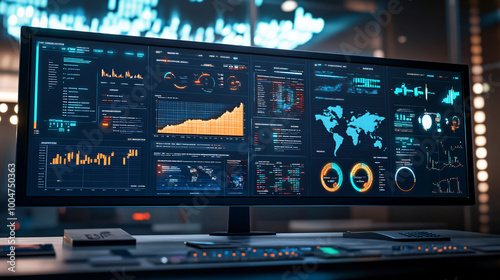 A digital dashboard displaying real-time data analytics. A digital dashboard displaying real-time data analytics.