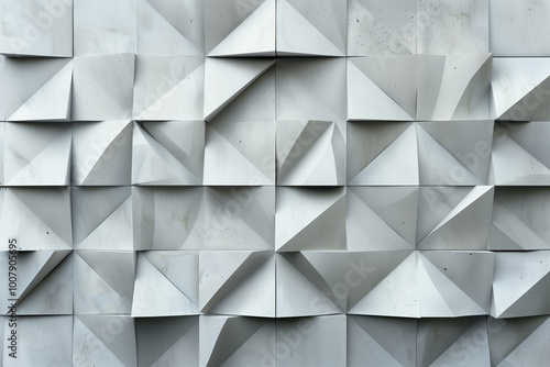 Abstract geometric pattern featuring white shapes on gray textured background