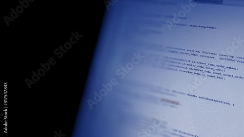 Android mobile development. Application source code on notebook screen background. Software developer programming code on computer. Abstract computer script source code.