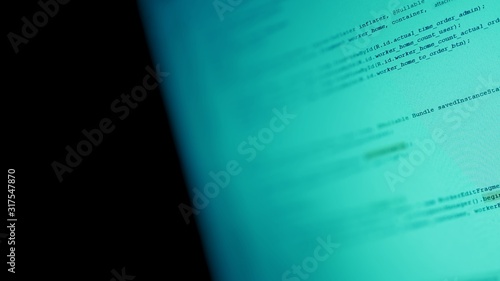 Android mobile development. Application source code on notebook green screen background. Software developer programming code on computer. Abstract computer script source code.