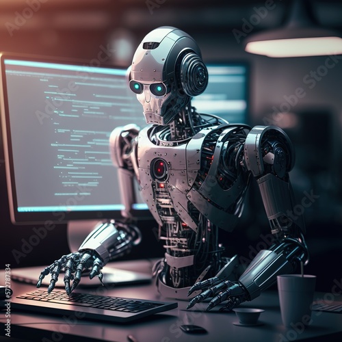 Artificial intelligence data analysis technology and control automation robot arms machine with monitoring software, generative ai