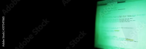 Banner with black space for design and your text. Android mobile development. Application source code on notebook green screen background.
