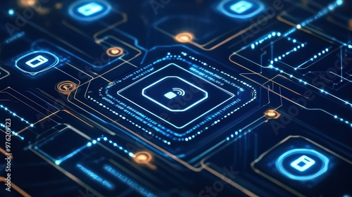 Close-up of a circuit board with secure lock icons representing digital encryption and cybersecurity protocols within high-tech systems.