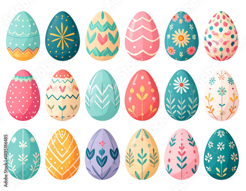 Colorful Easter Egg Vector Set with Geometric and Floral Patterns