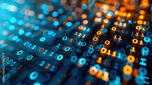 Digital landscape of binary code and equations, mathematics, computer science
