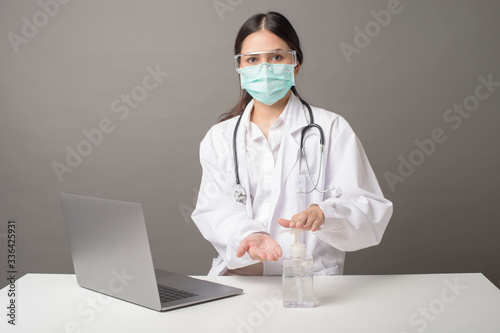 Doctor is using alcohol gel