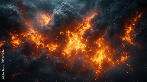 dramatic depiction of fiery clouds, evoking a sense of chaos and intensity.