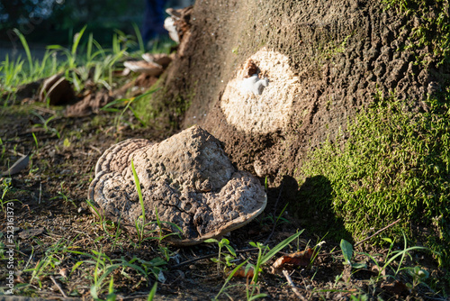 切り株から落ちたコフキサルノコシカケ( Ganoderma applanatum)/マンネンタケ科2022.08.15