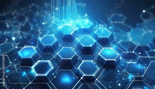 テクノロジーと青い電流、存在感のある模様、くっきりとシンプル、クールでスタイリッシュに表現 Generated by AI