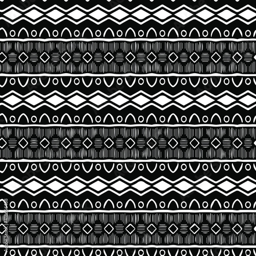 Geometric vector pattern with triangular elements. Seamless abstract ornament for wallpapers and backgrounds. Black and white patterns.