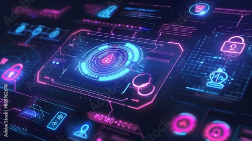 Hacker Attack System with Cybersecurity Hologram and Lock Icons Generative AI