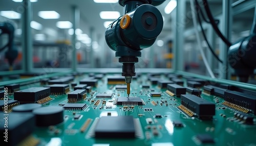 Hightech precision A robotic arm assembling a circuit board