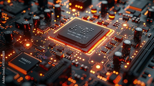 Image of the central processing unit,working processing technology,Nanotechnology Computing Technology,Conceptual CPU on circuit board,3d rendering