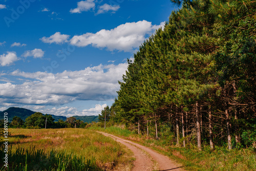 inland road with pine trees around