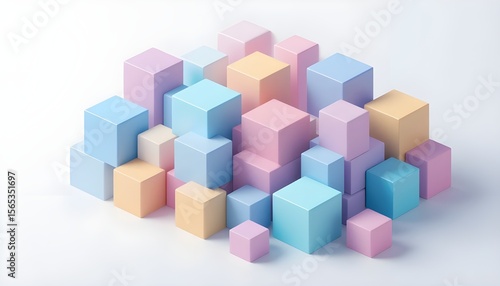Isometric Pastel Cubes Stacked on a White Background