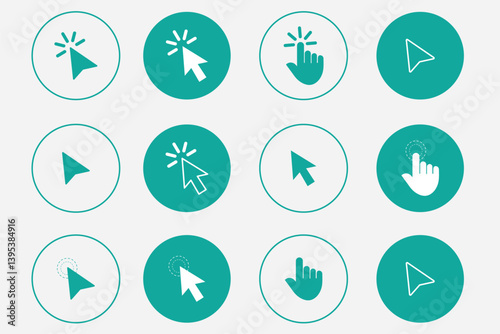 Link ×Title: Computer mouse click cursor arrow icons set with hand pointers, clicking effects, and loading symbols. Ideal for web design, user interface, and digital applications.