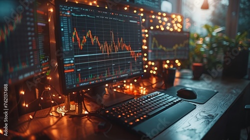 Market Graph Chart on Computer Screen, Financial Technical Analysis, Cryptocurrency Trade Exchange