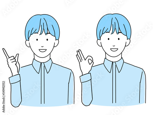 人物 OKポーズ・ポイントポーズの指差しをする男性のイラスト