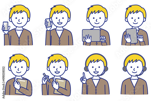 男性 PC スマホ タブレット 私服 オフィスカジュアル カーディガン 人物 イラスト ベクター