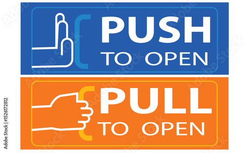 pull or push door signs. Vector push and pull icon sticker design concept. vector