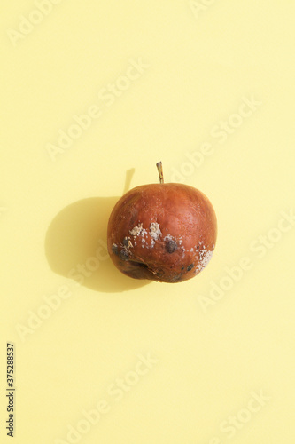 rotten apple on yellow background.