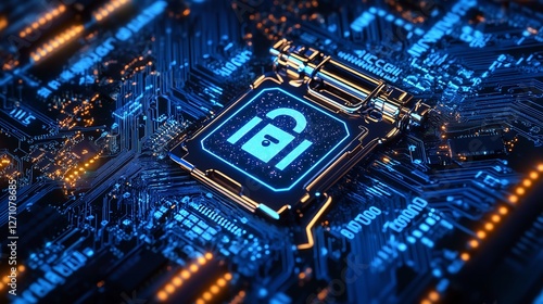 Secure Computing: A Glowing Lock Icon on a Microchip, Representing Cybersecurity, Data Protection, and the Importance of Online Safety in a Technological World