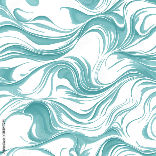 Vector Abstract Fluid Pattern, Teal and White Marble Swirl.