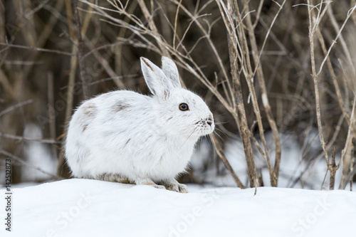 White Snowshoe Hare Portrait in Early Spring