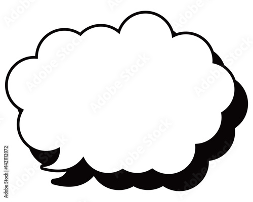シンプルな白黒の影付き吹き出し 丸みのある雲形の左向き01
