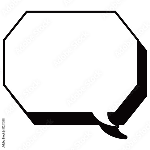 シンプルな白黒の影付き吹き出し 角のある八角形の右向き01