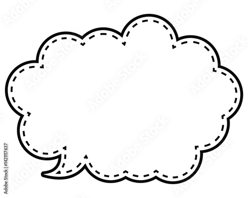 シンプルな白黒の点線付き吹き出し 丸みのある雲形の左向き01