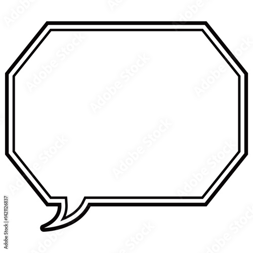 シンプルな白黒の二重線吹き出し 角のある八角形の左向き01