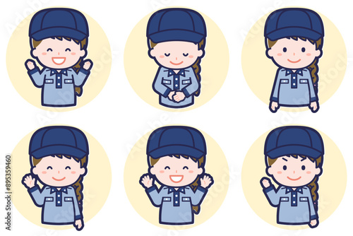 女性郵便配達員のポーズセット_02