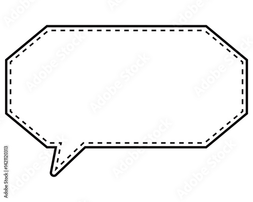 シンプルな白黒の点線付き吹き出し 細長い八角形の左向き03