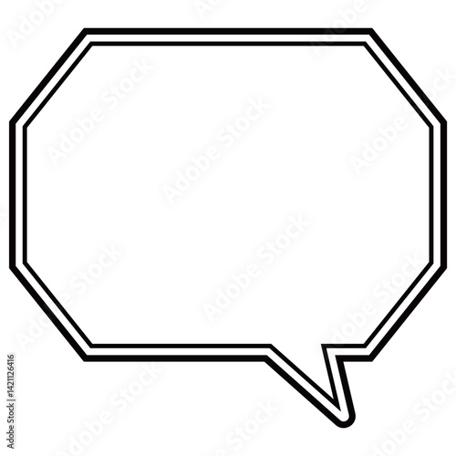 シンプルな白黒の二重線吹き出し 角のある八角形の右向き03