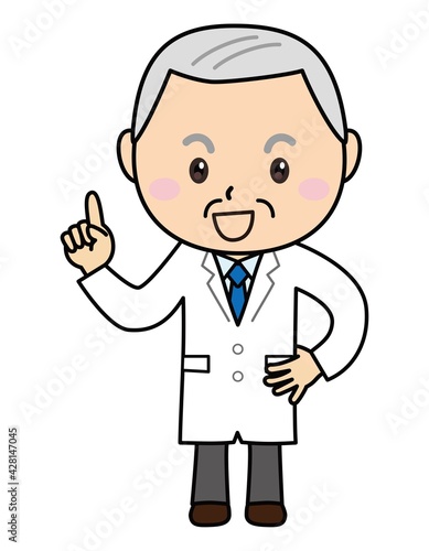 おじいさん03_05(白衣を着た笑顔のおじいさんが人差し指を立てるポーズ)