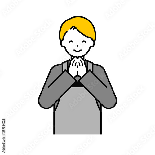 上半身のポーズ_シンプルな飲食店の店員の男性07