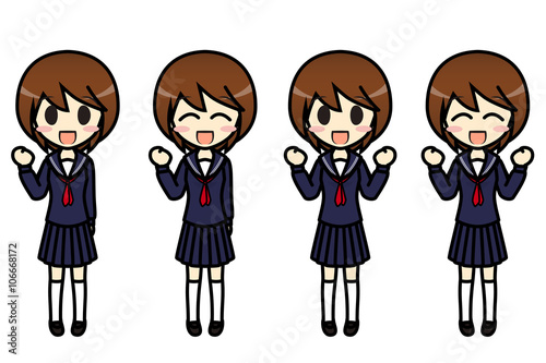 シンプルキャラクター 会話・表情イラスト集 中学生 女子 ガッツポーズ1