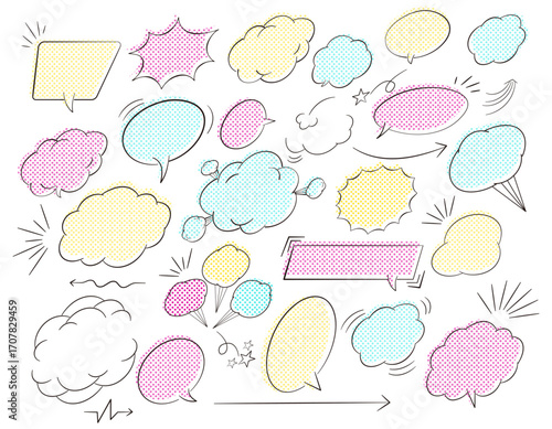 ポップでかわいいアメコミの吹き出しセット ドット柄・カラー1