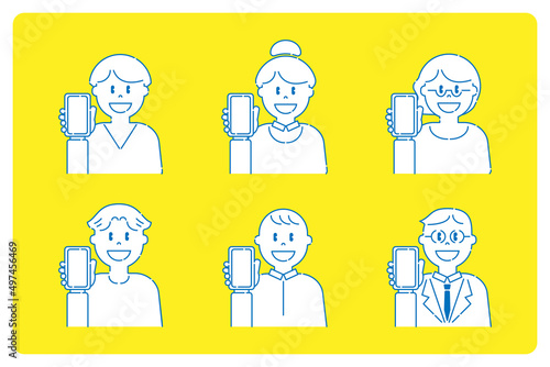 スマートフォンを持っているいろいろな人1 男性 女性 線画