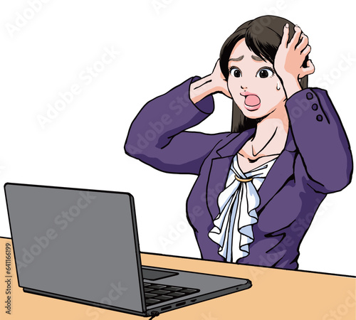 何か仕事でミスしてしまい焦る若い女性_スーツ1