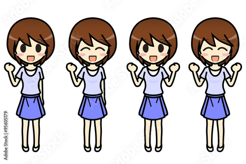 シンプルキャラクター 会話・表情イラスト集 私服(夏) 女性 ガッツポーズ1