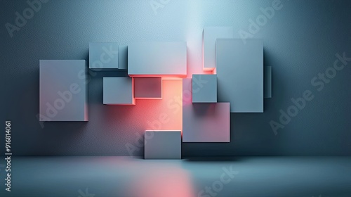 1. Abstract geometric shapes floating in an ethereal mist, glowing with soft light, futuristic and serene, designed with a sense of depth and balance, copy space for text,