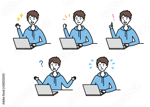 パソコンを使う10代の男の子
