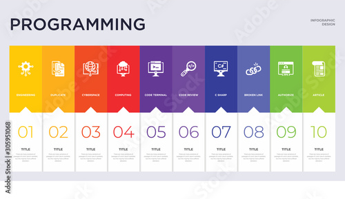 10 programming concept set included article, authorize, broken link, c sharp, code review, code terminal, computing, cyberspace, duplicate icons