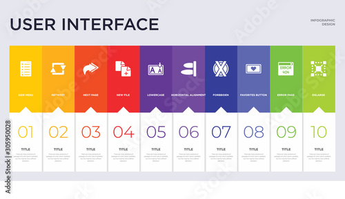 10 user interface concept set included enlarge, error page, favorites button, forbbiden, horizontal alignment, lowercase, new file, next page, retweet icons